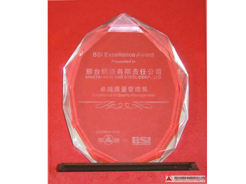 The first awarding ceremony of Excellent Quality Management Award is held by BSI(China) in Shanghai. Xingtai Steel was awarded the Excellent Quality Management Award together with other ten plus companies such as Bao Steel.