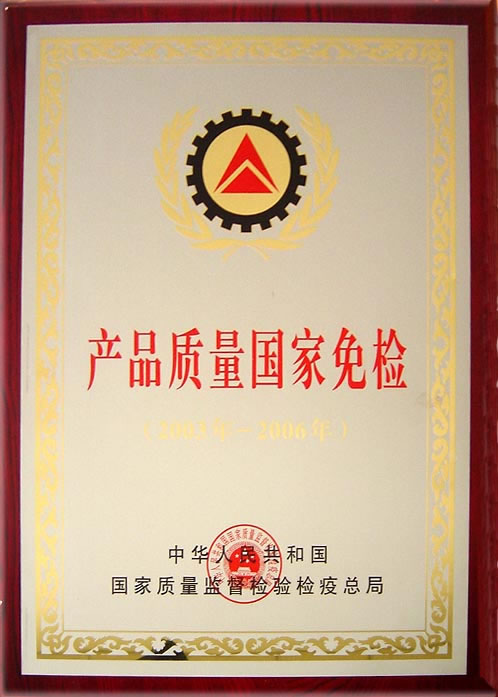 2003-2006年產(chǎn)品質(zhì)量國家免檢證書