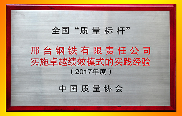 2017年9月,從國家工信部、中國質(zhì)量協(xié)會(huì)傳來喜訊,邢鋼申報(bào)的“實(shí)施卓越績效模式的實(shí)踐經(jīng)驗(yàn)”被評(píng)為2017年度“質(zhì)量標(biāo)桿”,并作為典型經(jīng)驗(yàn)予以推廣。