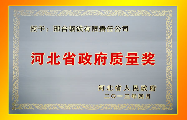 - 邢鋼榮獲2012年“河北省政府質(zhì)量獎(jiǎng)”殊榮