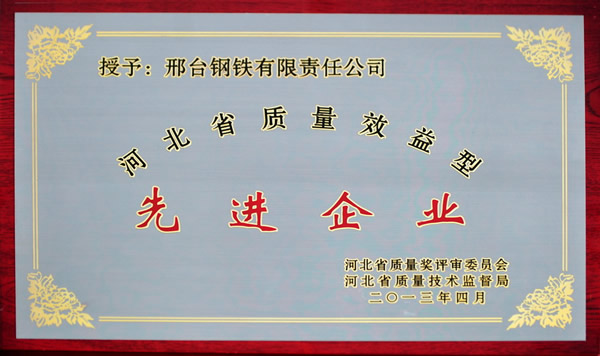 2013年7月20日,邢鋼榮獲2013年“河北省百?gòu)?qiáng)企業(yè)”榮譽(yù)稱號(hào)。