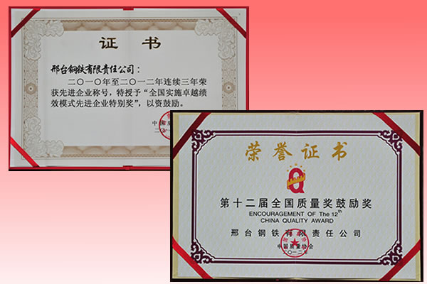 - 邢鋼再度榮獲“全國質(zhì)量獎鼓勵獎”,并獲“全國實施卓越績效模式先…