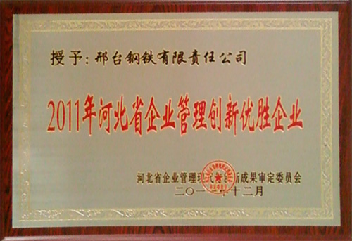 2012年4月25日,BSI公司(中國)在上海舉行了首次“卓越質(zhì)量管理獎”頒獎儀式,并授予邢臺鋼鐵有限責(zé)任公司“卓越質(zhì)量管理獎”稱號,同時獲獎的還有寶鋼等其他10幾家企業(yè)。