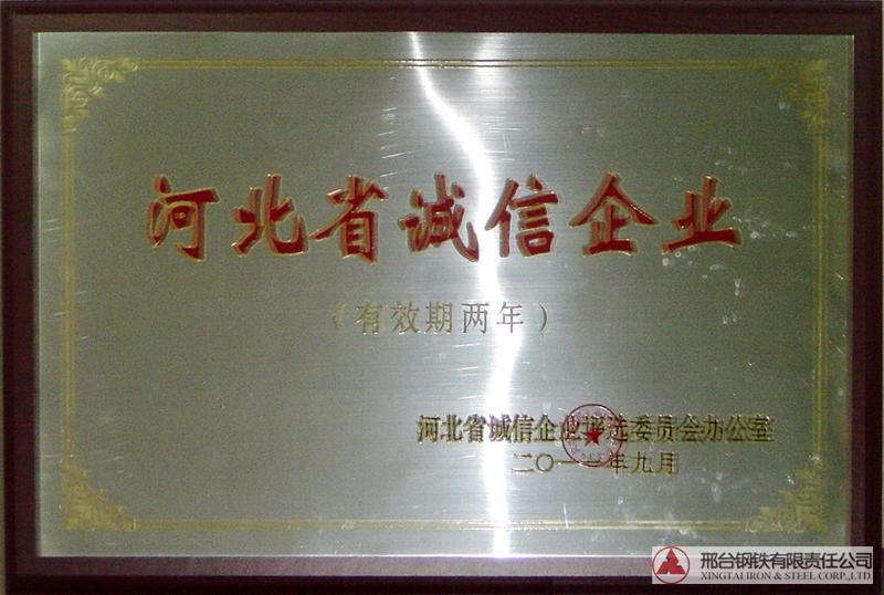 2011年9月,邢鋼被評(píng)選為“河北省誠(chéng)信企業(yè)”。