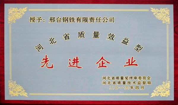 邢鋼線材(盤條)獲省名牌產(chǎn)品 公司獲省質(zhì)量效益型先進(jìn)企業(yè)