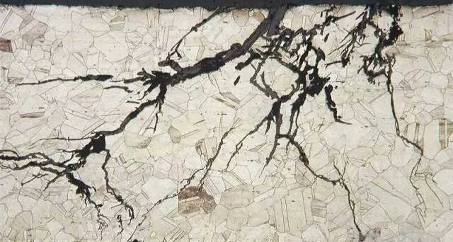 應(yīng)力腐蝕開裂是奧氏體不銹鋼最常見的破壞形式。大家需要注意,應(yīng)力腐蝕開裂取決于兩方面主要因素:其一,必須有應(yīng)力,它可能是外加應(yīng)力,也可能是殘余應(yīng)力;其二,應(yīng)力腐蝕開裂敏感離子,比如鹵族元素離子,尤其以氯離子最為常見。應(yīng)用奧氏體不銹鋼的地方,時(shí)常不是使用其承受應(yīng)力的能力,因此應(yīng)該特別關(guān)注殘余應(yīng)力,因?yàn)樵诤新入x子的環(huán)境中,殘余應(yīng)力會(huì)造成其應(yīng)力腐蝕開裂。去殘余應(yīng)力的方法是去應(yīng)力退火。