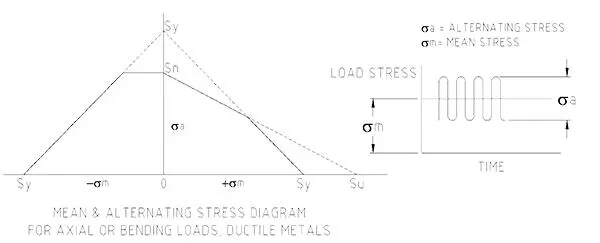 知道一部分將受到波動(dòng)負(fù)載需要設(shè)計(jì)師設(shè)計(jì)的部分,為該條件。使用已知的極限拉伸應(yīng)力和屈服應(yīng)力(金屬首先開(kāi)始永久變形的應(yīng)力,約80~90%的拉伸應(yīng)力),設(shè)計(jì)者構(gòu)造一個(gè)應(yīng)力限制包絡(luò),如圖2所示。然后設(shè)計(jì)該部件以使施加到其上的循環(huán)載荷為控制在包絡(luò)內(nèi)的應(yīng)力。