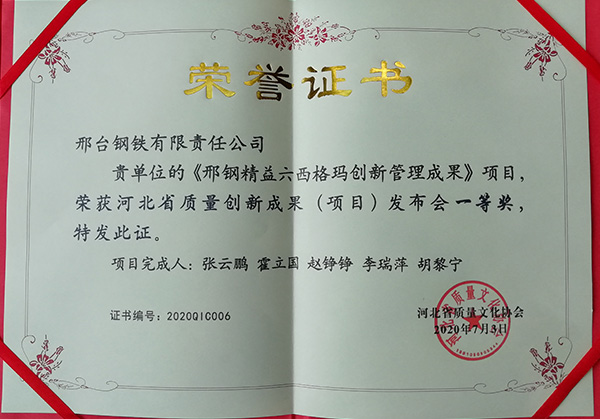 為激發(fā)萬眾創(chuàng)新熱情,提高創(chuàng)新質(zhì)量,促進(jìn)創(chuàng)新交流,河北省質(zhì)量文化協(xié)會(huì)于2020年7 月2日至3日在石家莊召開了河北省第三屆質(zhì)量創(chuàng)新成果(項(xiàng)目)發(fā)布會(huì)。經(jīng)申報(bào)材料評(píng)審,大會(huì)發(fā)表,專家評(píng)審,邢臺(tái)鋼鐵有限責(zé)任公司申報(bào)的4項(xiàng)質(zhì)量創(chuàng)新成果(項(xiàng)目)全部獲獎(jiǎng)。