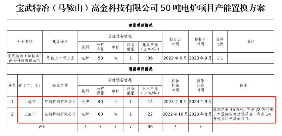 附件:寶武特冶(馬鞍山)高金科技有限公司50噸電爐項目產(chǎn)能置換方案