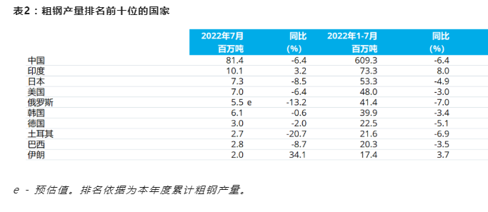 來源:世界鋼鐵協(xié)會(huì) 發(fā)布時(shí)間:2022年08月24日 點(diǎn)擊數(shù):