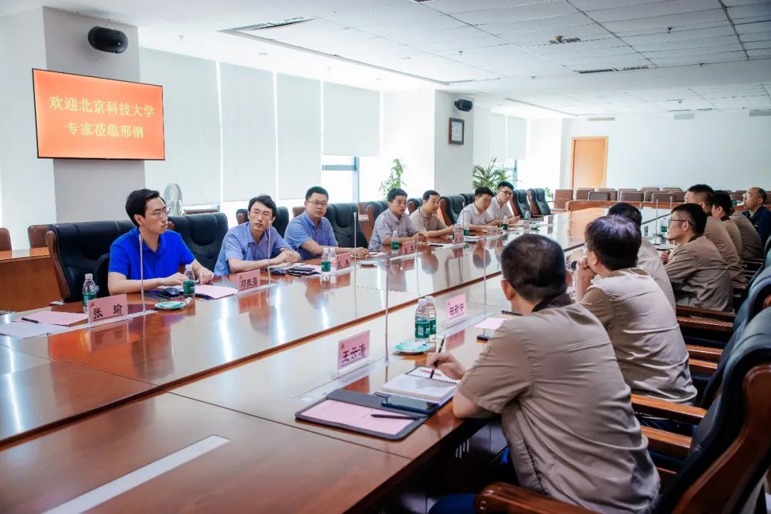 本次來訪的北京科技大學(xué)專家團(tuán)隊(duì),由北科大冶金與生態(tài)工程學(xué)院、能源與環(huán)境工程學(xué)院、工程技術(shù)研究院、綠色低碳鋼鐵冶金全國重點(diǎn)實(shí)驗(yàn)室以及就業(yè)指導(dǎo)中心的眾多專家、教授組成。北科大專家們參觀了公司產(chǎn)品展室,了解了邢鋼的歷史沿革、生產(chǎn)概況、產(chǎn)品結(jié)構(gòu)、綠色低碳、智能制造、科技創(chuàng)新及優(yōu)勢特色等情況,隨后與邢鋼相關(guān)技術(shù)和管理人員展開了分組討論。雙方在工藝創(chuàng)新、成果轉(zhuǎn)化及人才引進(jìn)等方面達(dá)成了共識,圍繞潔凈鋼冶煉、夾雜物機(jī)理、全流程質(zhì)量管控、連鑄偏析、脫碳機(jī)理等技術(shù)工作層面課題進(jìn)行了深入的研討,就產(chǎn)學(xué)研合作、招聘崗位、冶金/材料等相關(guān)專業(yè)生源就業(yè)情況、薪資福利等方面進(jìn)行了有效溝通。