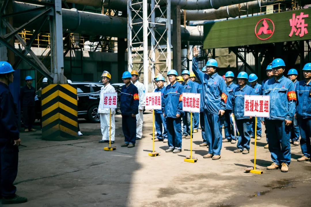 隨后,參會人員一起現(xiàn)場觀摩了邢鋼高溫熔融金屬爆噴事故現(xiàn)場應急處置演練。本次演練,模擬煉鋼廠加料跨天車向2#轉爐加廢鋼時發(fā)生爆噴為背景,演示了事故上報、安全疏散、預案啟動、現(xiàn)場搶險、應急救援等環(huán)節(jié)。