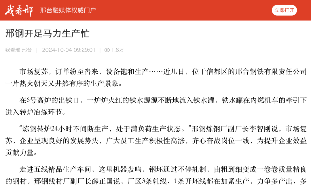 市場復(fù)蘇,訂單紛至沓來,設(shè)備飽和生產(chǎn)......近幾日,位 于信都區(qū)的邢臺鋼鐵有限責(zé)任公司一片 熱火朝天又井然有序的生產(chǎn)景象。